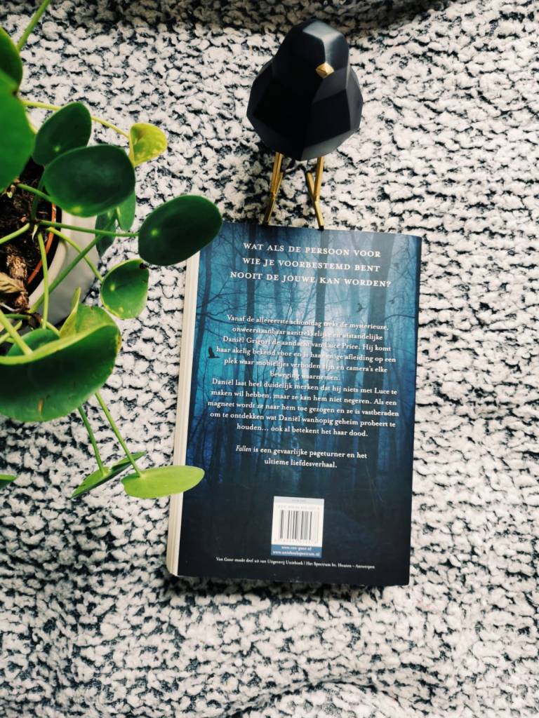 Doordat ik ooit de trailer van een film had gezien over Fallen wist ik stiekem al een beetje waar het over ging. Nadat ik de proloog had gelezen, was ik eigenlijk helemaal teleurgesteld. De proloog gaf namelijk veel te veel weg en doordat ik de trailer had gezien, kon ik net zo goed het boek wegleggen want ik wist nu toch wel waar het heen ging. Dat dacht ik in elk geval…. Want niets was minder waar. Dit verhaal zit zo ontzettend goed in elkaar. Het is ontzettend mysterieus. Want waarom doet Daniël zo raar tegen Luce, terwijl ze elkaar niet eens kennen? En waarom is Luce zo ontzettend geobsedeerd met Daniël terwijl hij zo gemeen tegen haar doet. Maar ook op de school waar Luce zit en wat er in haar verleden is gebeurt is zo ontzettend mysterieus. Ik moest gewoon antwoorden hebben op deze vragen, dus ik bleef maar doorlezen. Maar naast dat het mysterieuze een enorm pluspunt had, was dit verhaal ook heel gedetailleerd beschreven. Ik kon alles voor mij zien wat Lauren Kate (de schrijver) had opgeschreven. Ik kon zelfs bijna de geur van het bos ruiken en voelen hoe het is om midden in een kerk te zwemmen. Daarnaast was het boek ook de hele tijd heel verrassend. Ik kon niks voorspellen en ik zat bij het ene na het andere plot vol verbazing door te lezen. En als laatste had dit boek een mega en gigantisch goed liefdesverhaal. Wat het hele verhaal bijna, met de nadruk op bijna, perfect maakte.