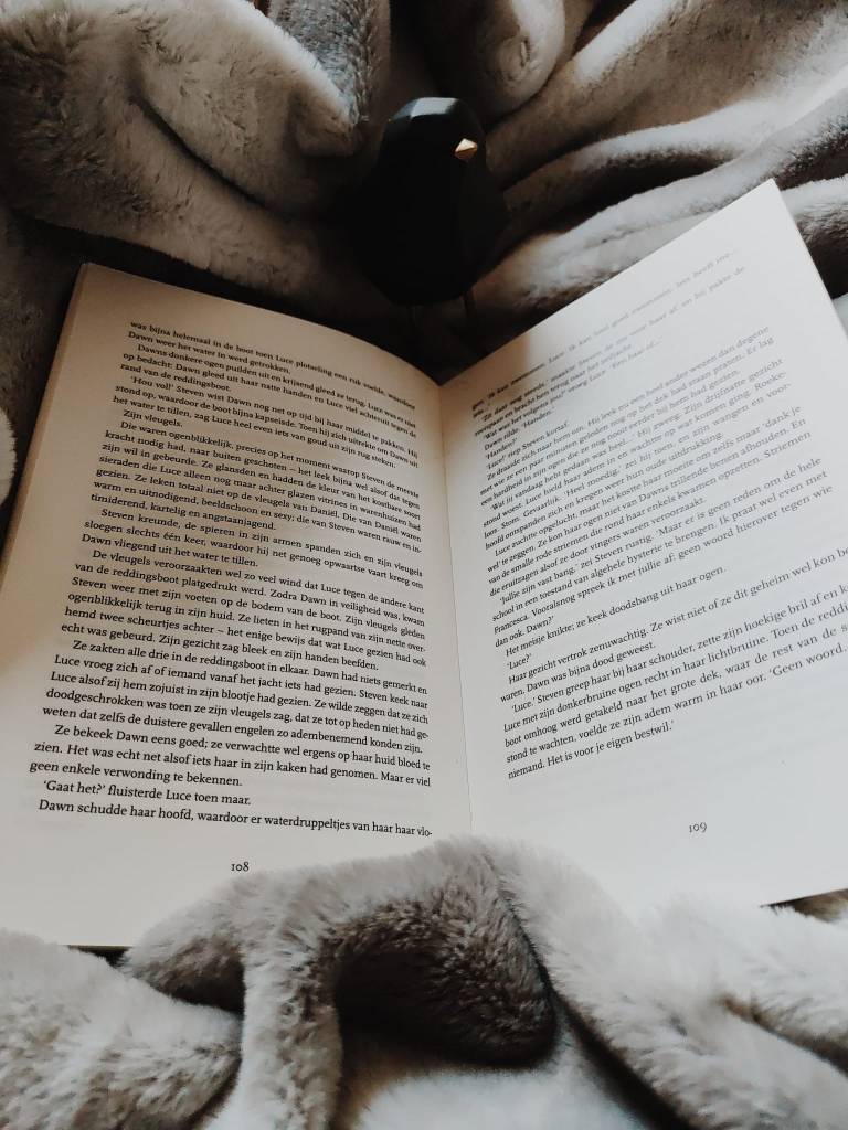 Maar nu het positieve! Want na 100 bladzijdes te hebben gelezen kwam er eindelijk wat actie in de tent en zat ik bijna de hele tijd op het puntje van mijn stoel (of eigenlijk bank). Er gebeurde zo ontzettend veel in het verhaal, dat het de eerste saaie 100 bladzijdes helemaal goed heeft gemaakt. De verscheurende twijfels van Luce waren goed voelbaar en ook ik begon te twijfelen aan die mooie, met witte engelenvleugels, goed uitziende Daniël. Maar ondanks alle twijfels, spatte de liefde van Luce en Daniël letterlijk van het boek af. Iets waar ik altijd ongelofelijk van genoot. Daarnaast ben ik gewoon dol op verhalen die over engelen gaan. Maar vooral dit verhaal het heeft iets ongrijpbaar en magisch.