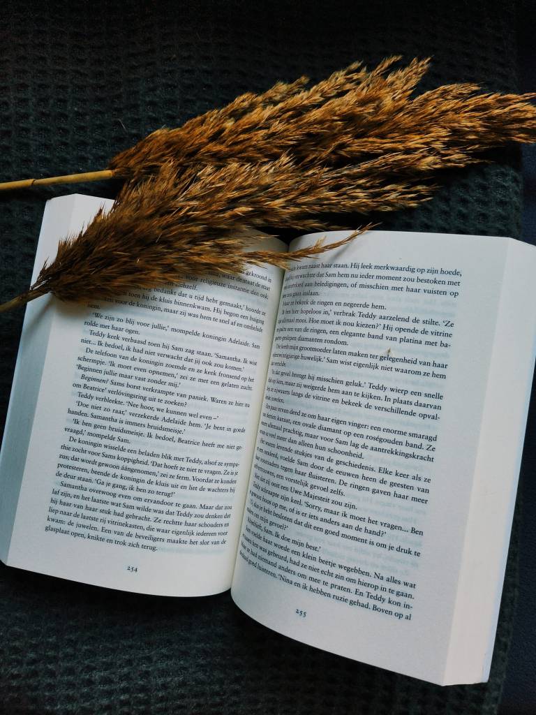 Wat ik van het boek vond? Ik weet het niet… Het begin van het verhaal vond ik echt ontzettend pakkend en de schrijfstijl is ook erg fijn. Ik las in elk geval heel snel door het boek heen! Zoals ik al zei ik vond het begin erg pakkend en het boek ook echt heel leuk in het begin. Beatrice deed mij bijvoorbeeld een beetje denken aan Amalia. Niet dat ik die hele meid ken of überhaupt ooit in haar verdiept heb, toch deed ze mij aan haar denken. Beatrice was erg serieus en was bereid alles op te offeren voor haar land. Ik heb het idee dat Amalia dat ook zou doen. Ook de andere leden Samantha en Jefferson deden mij denken aan onze eigen koninklijke familie. Wat zo leuk aan dit boek was, was dat je eigenlijk de hele tijd verschillende verhalen las. Ik kon lezen vanuit Beatrice, Samantha, Daphne en Nina. Wat ik erg jammer vond was dat ik niet vanuit Jefferson kon lezen, ik had graag willen weten wat hij allemaal dacht. In het begin vond ik de verhalen van iedereen leuk en interessant. Maar gaande weg het boek werden sommige verhalen een beetje saai. Zoals die van Samantha bijvoorbeeld, haar verhaal was op het einde niet meer interessant en was nogal voorspellend. Daphne haar verhaal vond ik uiteindelijk weinig tot geen toevoeging hebben. Alleen de verhaallijn van Beatrice en Nina vond ik aan het einde nog interessant. Hierdoor was ik snel geneigd om de verhaallijn van Samantha en Daphne ‘zoekend’ te lezen. Wat ik uiteindelijk toch erg zonde vind. Ik vind het belangrijk dat een boek je blijft vastpakken in welke verhaallijn je ook zit.
