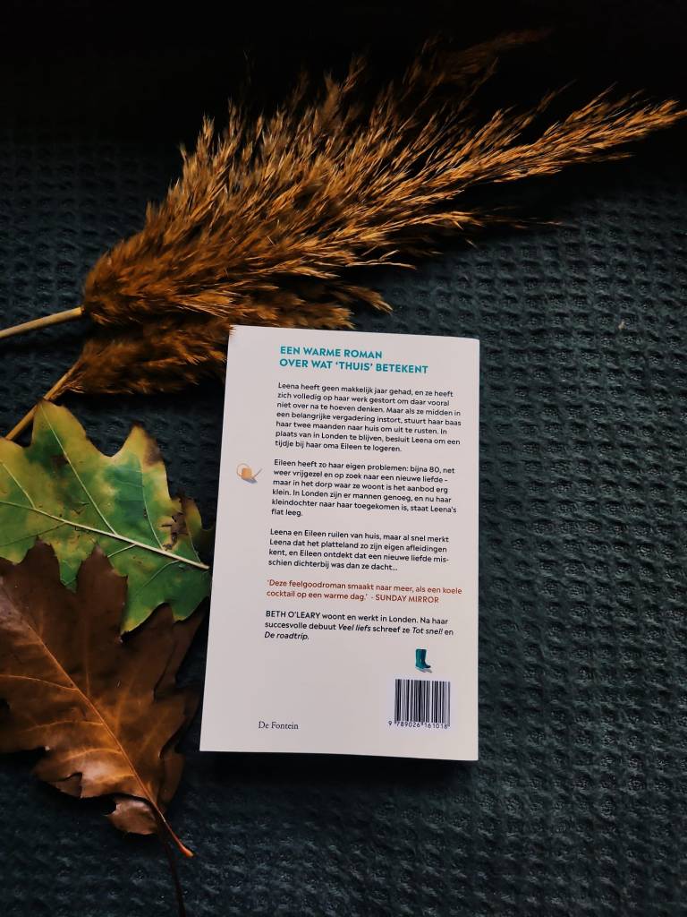 Wat een mega lief en schattig verhaal was dit zeg. Elke keer wanneer ik het boek ging lezen kreeg ik het warm van binnen en werd ik er helemaal blij van. Ik moet zeggen dat dit niet vaak gebeurd bij mij en een boek. In dit boek volg je Leena’s verhaal en die van Eileen. Beide verhalen zijn evengoed. Als ik dan vanuit Eileen lees, wil ik alleen maar doorlezen in haar verhaal. Maar als ik dan weer vanuit Leena lees, wil ik alleen maar doorlezen in dat van haar. De afwisseling ergerde mij (op een goede manier) maar het maakte het boek wel helemaal compleet. Dit verhaal leert je wat een ‘thuis’ betekent en hoe belangrijk het is om zo af en toe los te raken van je thuis. Het boek heeft ontzettend veel humor, ik heb af en toe hardop moeten lachen. Maar het boek behandeld ook serieuzere onderwerpen waardoor er bij mij zo nu en dan een traan over mijn wang rolde. Het boek behandeld thema’s als eenzaamheid, huiselijk geweld en rouwprocessen. Dit zorgde voor veel diepgang in het verhaal.
