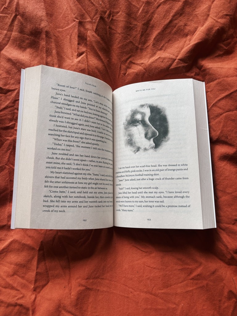Wel merkte ik dat ik in dit verhaal iets moeilijker in het verhaal kwam dan bij A Thousand Boy Kisses. Ik denk dat het komt omdat er dit keer geen mysterie inzit waar het boek eigenlijk overgaat. Ook kon je merken dat Write me for you overduidelijk meer een YA-boek is, en vond ik de karakterontwikkeling niet altijd zo diepgaand als ik zelf had gehoopt. Sommige dingen mochten van mij wel wat verder worden uitgediept zoals de onzekerheden van June maar ook van Jesse. Maar alsnog deed dit absoluut niets af aan de kracht van het verhaal en de manier waarop het was geschreven. Want de schrijfstijl was opnieuw ontzettend mooi en het boek leest ook erg vlot. De emoties voelen rauw en echt, en de pijn was zo ontzettend voelbaar. Wat ik het mooist aan het boek vond waren de connecties die werden gemaakt tussen mensen die hetzelfde doormaken.